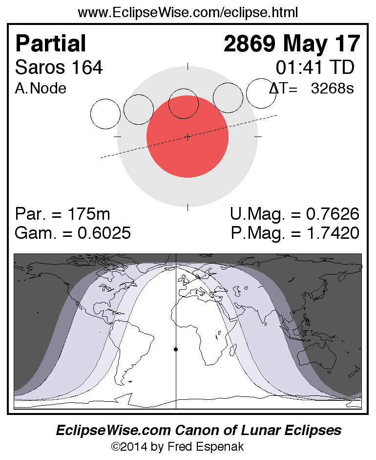 The instant of greatest eclipse takes place on 2869 May 17 at 01:41:09 TD (00:46:41 UT1).