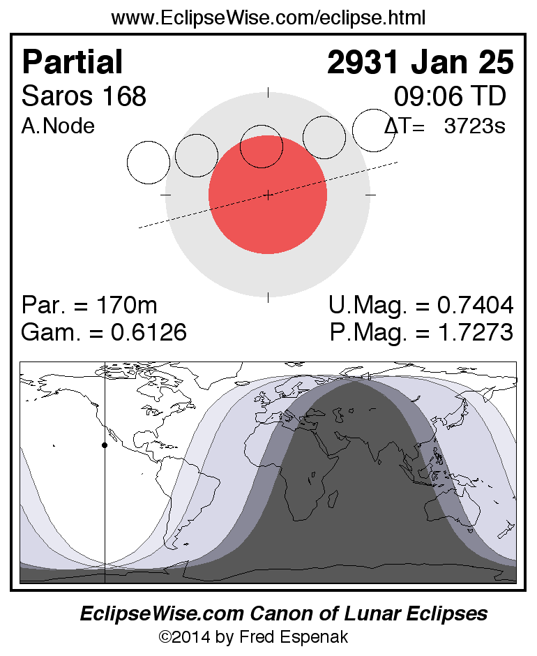 The instant of greatest eclipse takes place on 2931 Jan 25 at 09:05:53 TD (08:03:51 UT1).