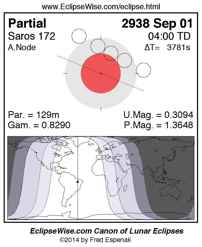 The partial lunar eclipse of 2938 Sep 01 is preceded two weeks earlier by a total solar eclipse on 2938 Aug 16.