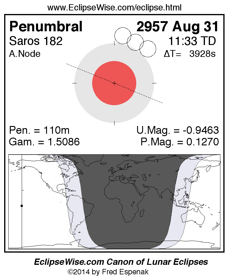 Penumbral Lunar Eclipse of 2957 Aug 31