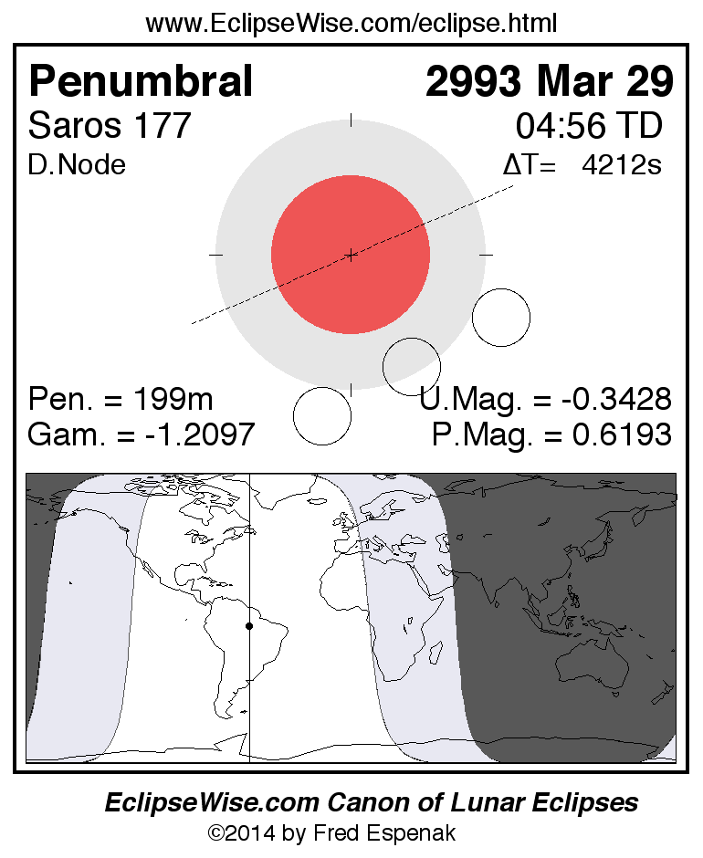 Penumbral Lunar Eclipse of 2993 Mar 29