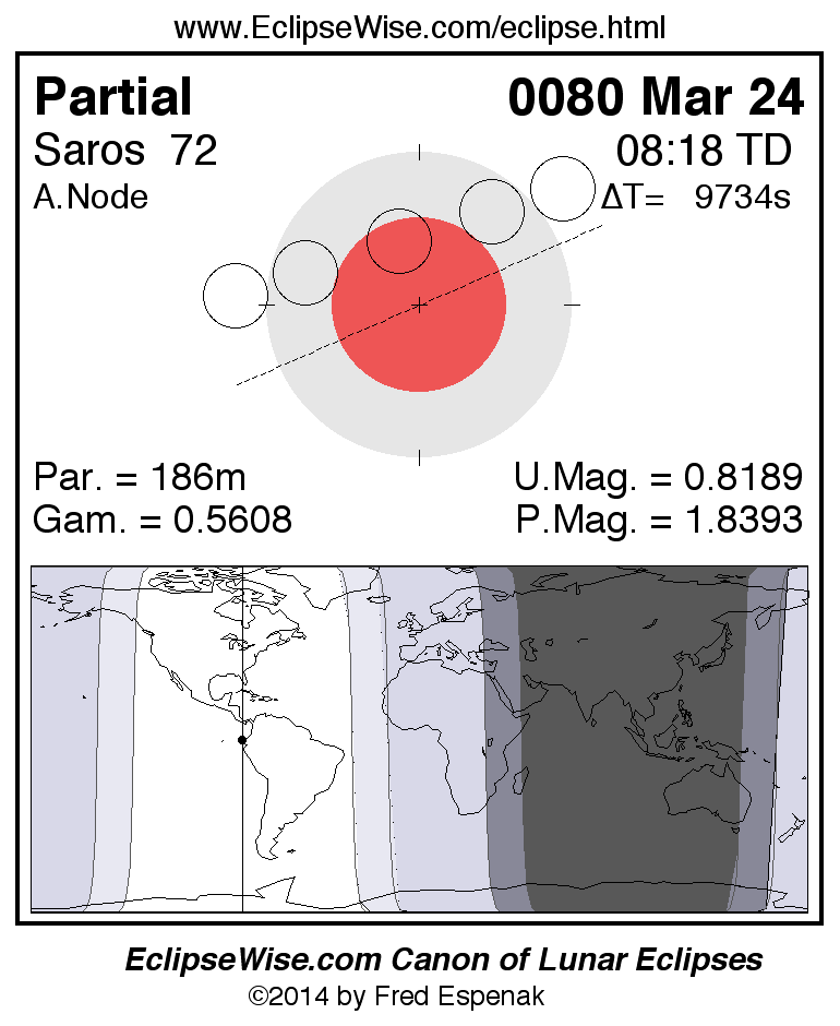 For more information on this series see Statistics for Lunar Eclipses of Saros 72 .