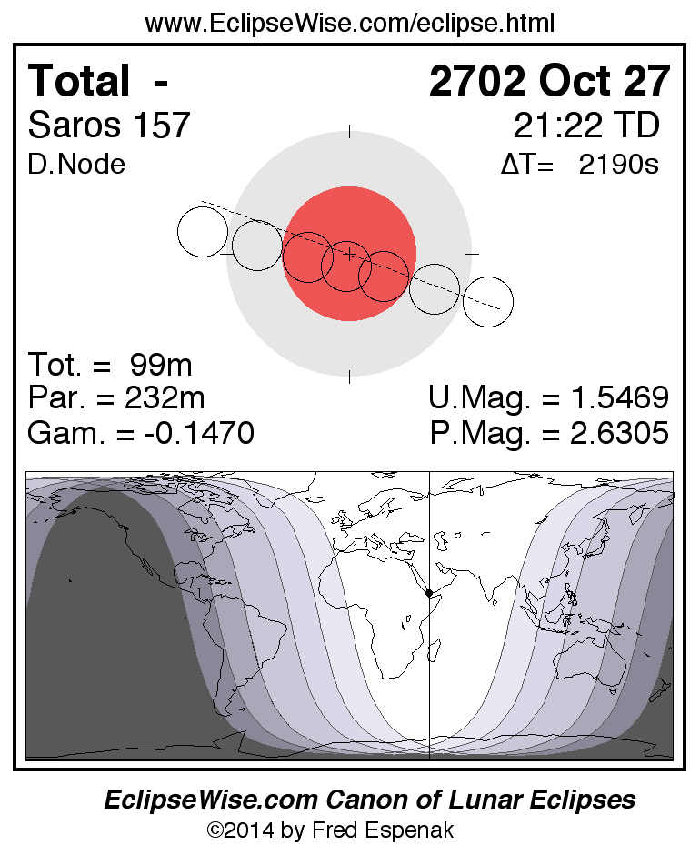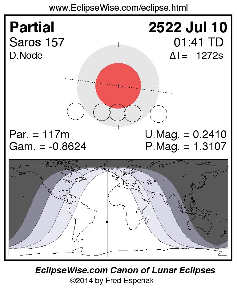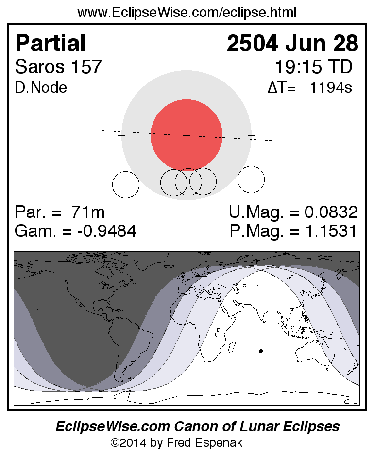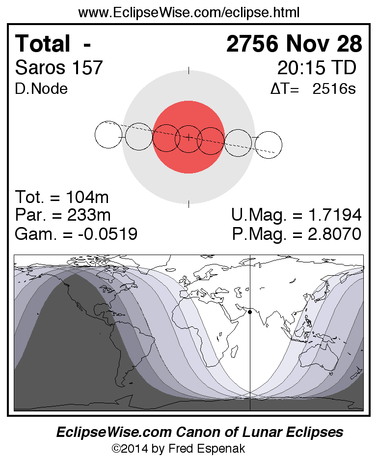 For more information on this series see Statistics for Lunar Eclipses of Saros 157 .