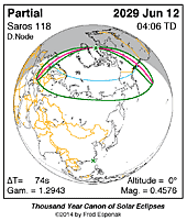 Much of EclipseWise.com is based on the Thousand Year Canon of Solar Eclipses 1501 to 2500 (Espenak 2014a) and the Thousand Year Canon of Lunar Eclipses 1501 to 2500 (Espenak 2014b). These eclipse predictions use the Jet Propulsion Lab's DE406 — a computer ephemeris used for calculating high precision coordinates of the Sun and Moon for thousands of years into the past and future.