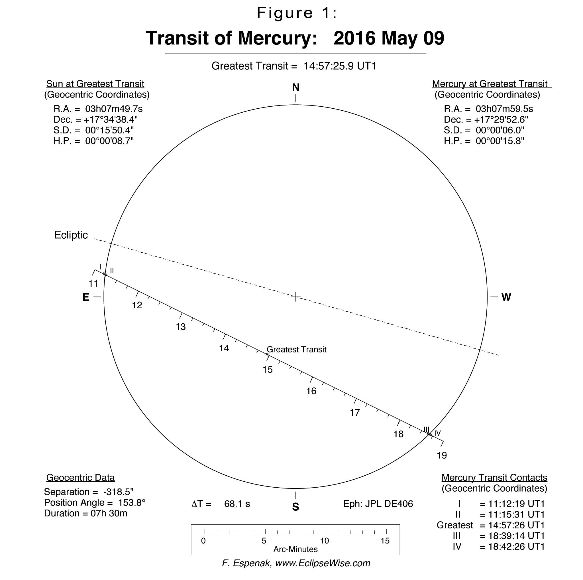 | Table 1: Geocentric Phases of the 2016 Transit of Mercury | ||