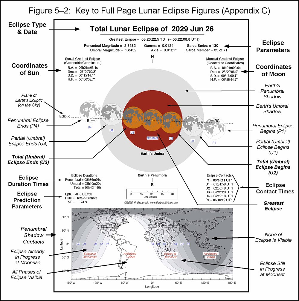 In the Standard Edition, Appendix C contains 112 full-page diagrams and maps - one for each lunar eclipse from 2021 through 2070.