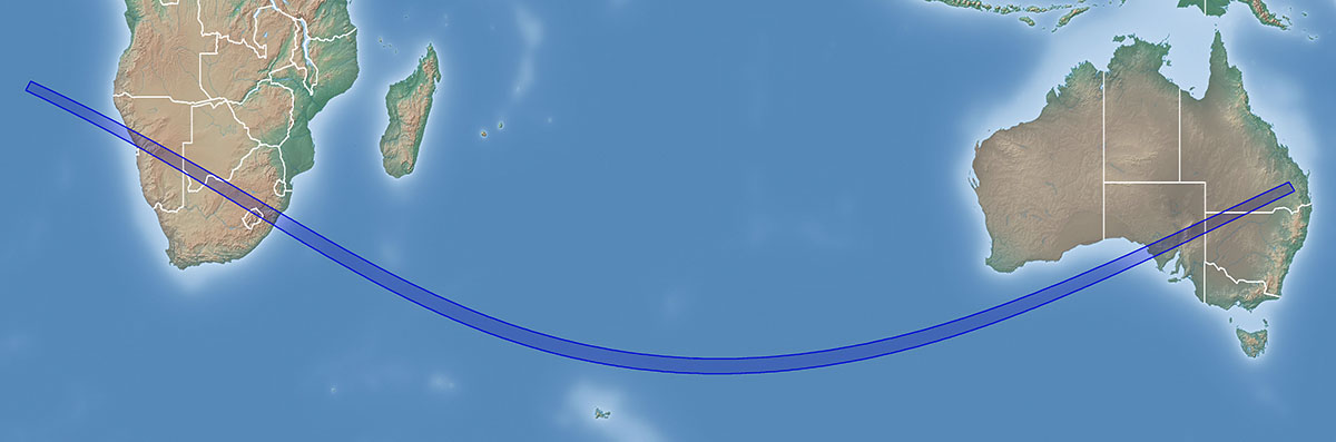 On Monday, November 25, 2030, a total eclipse of the Sun will be visible from the Southern Hemisphere. Although a partial eclipse will be seen from southern Africa, Australia, and Antarctica, the total phase in which the Moon completely covers the Sun (known as totality) will only be seen from within the narrow path of the Moon’s umbral shadow as it sweeps across five countries and territories: Namibia, Botswana, South Africa, Lesotho, and Australia.