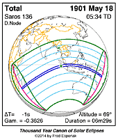 | 1901 May 18 | 05:33:48 | Total | 136 | 1.068 | 06m29s | s Asia, Australia, e Africa