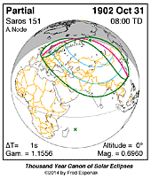 | 1902 Oct 31 | 08:00:17 | Partial | 151 | 0.696 | - | c Asia, e Europe |