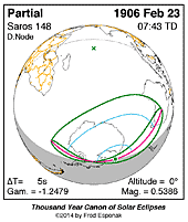 | 1906 Feb 23 | 07:43:20 | Partial | 148 | 0.539 | - | Antarctica, Australia |