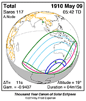 | 1910 May 09 | 05:42:13 | Total | 117 | 1.060 | 04m15s | Antarctica, Australia, s Indies