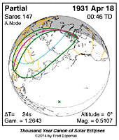 | 1931 Apr 18 | 00:45:35 | Partial | 147 | 0.511 | - | e Asia, n Canada, Greenland |