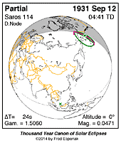 | 1931 Sep 12 | 04:41:25 | Partial | 114 | 0.047 | - | Russia, Alaska |