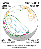 | 1931 Oct 11 | 12:55:40 | Partial | 152 | 0.901 | - | s South America, Antarctica |