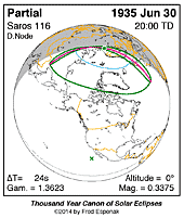 | 1935 Jun 30 | 19:59:46 | Partial | 116 | 0.338 | - | Russia, Canada, Greenland, n Europe |