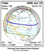 | 1936 Jun 19 | 05:20:31 | Total | 126 | 1.033 | 02m31s | Asia, e Europe, n Africa