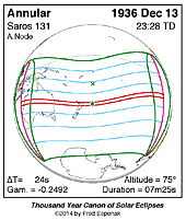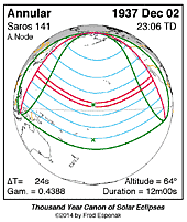 | 1937 Dec 02 | 23:05:45 | Annular | 141 | 0.918 | 12m00s | e Asia, w North America, e Indies
