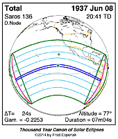 | 1937 Jun 08 | 20:41:02 | Total | 136 | 1.075 | 07m04s | s North America, Central America, nw South America