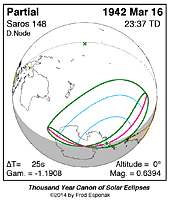 | 1942 Mar 16 | 23:37:07 | Partial | 148 | 0.639 | - | Antarctica |