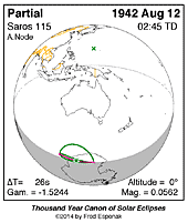 | 1942 Sep 10 | 15:39:32 | Partial | 153 | 0.523 | - | Canada, Greenland, w Europe, n Africa |