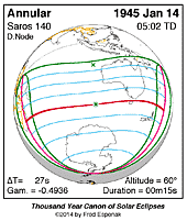 | 1945 Jul 09 | 13:27:45 | Total | 145 | 1.018 | 01m15s | North America, n Africa, Europe, w Asia