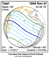 | 1948 Nov 01 | 05:59:18 | Total | 142 | 1.023 | 01m56s | e Africa, central Indian Ocean