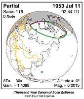 | 1953 Jul 11 | 02:44:14 | Partial | 116 | 0.201 | - | Alaska, n Canada, Greenland |