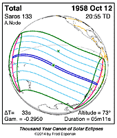 | 1958 Oct 12 | 20:55:28 | Total | 133 | 1.061 | 05m11s | Australia, New Zealand, Pacific, sw South America