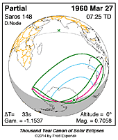 | 1960 Mar 27 | 07:25:07 | Partial | 148 | 0.706 | - | Antarctica, s Indian, Australia |