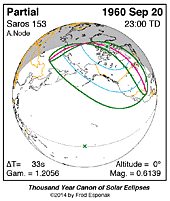 | 1960 Sep 20 | 22:59:56 | Partial | 153 | 0.614 | - | ne Asia, North America |