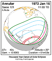 | 1972 Jan 16 | 11:03:22 | Annular | 121 | 0.969 | 01m53s | s South America, Antarctica