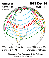 | 1973 Dec 24 | 15:02:44 | Annular | 141 | 0.917 | 12m02s | e North America, South America, w Europe, w Africa