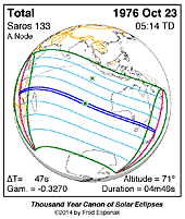 | 1976 Oct 23 | 05:13:45 | Total | 133 | 1.057 | 04m46s | e Africa, India, East Indies, Australia, New Zealand