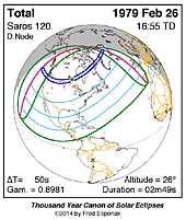 | 1979 Feb 26 | 16:55:06 | Total | 120 | 1.039 | 02m49s | N. & C. America, nw Europe