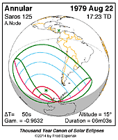 | 1980 Aug 10 | 19:12:21 | Annular | 135 | 0.973 | 03m23s | sw North America, C. & South America