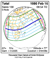 | 1980 Feb 16 | 08:54:01 | Total | 130 | 1.043 | 04m08s | Africa, s Asia