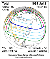 | 1981 Jul 31 | 03:46:37 | Total | 145 | 1.026 | 02m02s | e Europe, Asia, Alaska, nw Canada