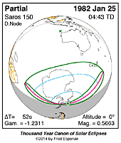 | 1982 Jan 25 | 04:42:53 | Partial | 150 | 0.566 | - | New Zealand, Antarctica |