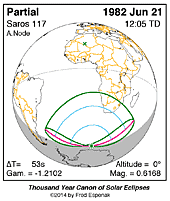 | 1982 Jun 21 | 12:04:33 | Partial | 117 | 0.617 | - | s Atlantic, s Africa |