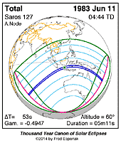 | 1983 Jun 11 | 04:43:34 | Total | 127 | 1.052 | 05m11s | se Asia, East Indies, Australia
