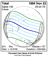 | 1984 Nov 22 | 22:54:17 | Total | 142 | 1.024 | 02m00s | East Indies, Australia, New Zealand, Antarctica