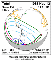 | 1985 Nov 12 | 14:11:27 | Total | 152 | 1.039 | 01m59s | s South America, Antarctica