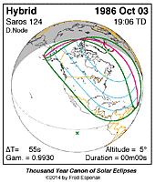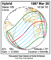| 1987 Mar 29 | 12:49:47 | Hybrid | 129 | 1.001 | 00m08s | s South America, Africa, Mid East