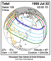 | 1990 Jul 22 | 03:03:07 | Total | 126 | 1.039 | 02m33s | n & c Asia, nw North America