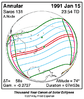| 1991 Jan 15 | 23:53:51 | Annular | 131 | 0.929 | 07m53s | Australia, New Zealand, Antarctica, s Pacific
