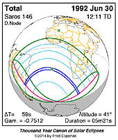| 1992 Jun 30 | 12:11:22 | Total | 146 | 1.059 | 05m21s | South America, s Atlantic, w Africa
