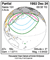 | 1992 Dec 24 | 00:31:41 | Partial | 151 | 0.842 | - | ne Asia, n Pacific, Alaska |