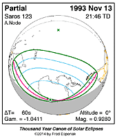 | 1993 May 21 | 14:20:15 | Partial | 118 | 0.735 | - | w North America, n Europe, nw Asia |