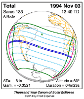 | 1994 Nov 03 | 13:40:06 | Total | 133 | 1.054 | 04m23s | South America, Antarctica, s Atlantic s Africa