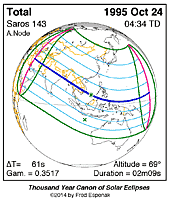 | 1995 Oct 24 | 04:33:31 | Total | 143 | 1.021 | 02m10s | Middle East, Asia, Indonesia, Australia